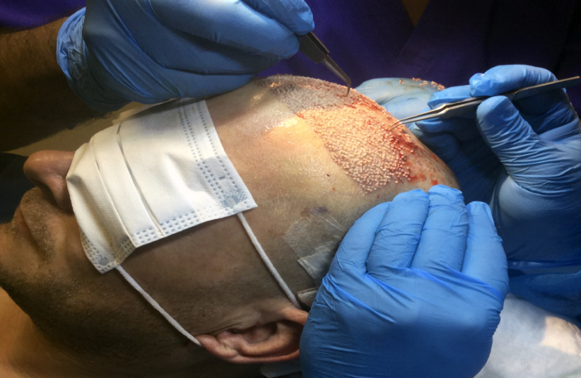 The procedure is carried out under local anaesthetic. After the donor strip is removed, the area is closed with sutures, leaving a linear scar that is typically concealed by surrounding hair.